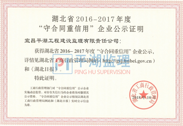 湖北省第十四届(2016-2017年度)守合同重信用企业