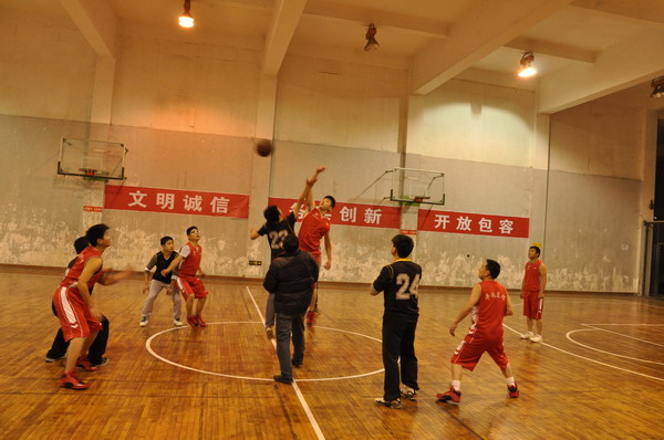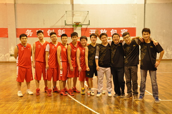 盛总(中)与宜昌平湖工程建设监理有限责任公司篮球队合影
