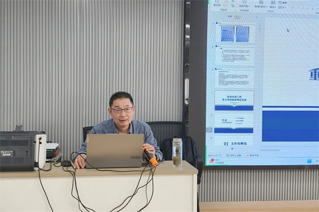 公司技术负责人谢忠安通过条文与案例分析相结合的方式,对《房屋市政工程重大事故判定标准》进行了详细解读,有效增强了全体与会人员“风险就是隐患,隐患就是事故”的责任意识和重大隐患判定的识别和处置能力。