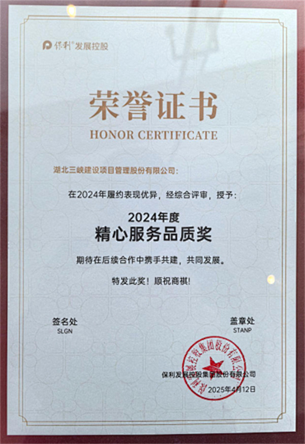 | ——完美平台荣获保利发展控股集团“2024年度精心服务品质奖” |